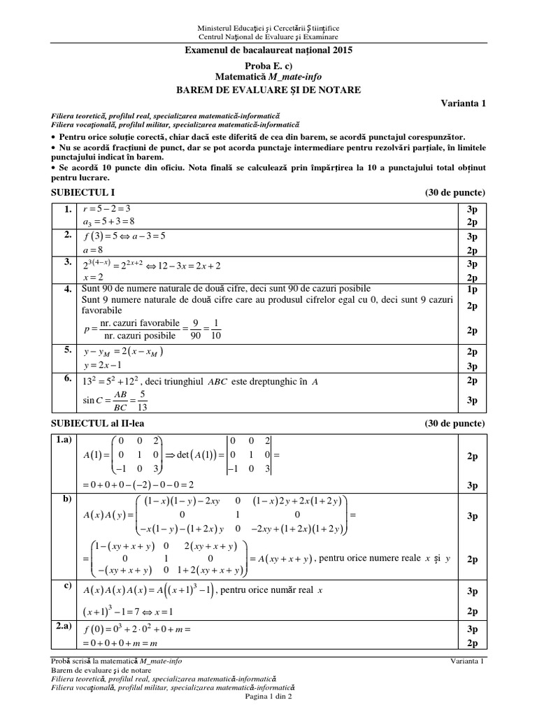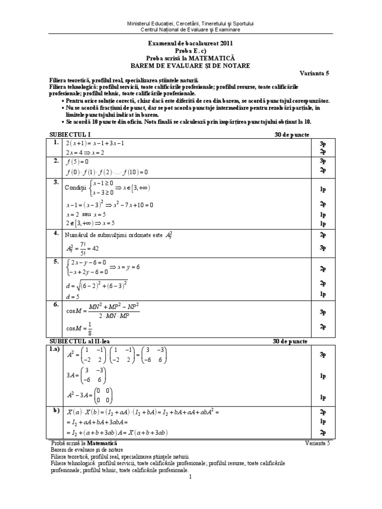 Barem Matematică BAC 2020 Cum se punctează subiectele de ... from stiriedu.ro • enunțul se consideră dezvoltat dacă, pe lângă subiect și predicat. Progresul tehnologic în societatea avansată; Rezolvare subiectul dat la simulare bac in anul 2021 la tehnologic. • nu se acordă fracţiuni de punct, dar se pot acorda punctaje intermediare. Test și șablon de evaluare. Marți, 29 iunie, elevii din românia care au terminat liceul participă la proba obligatorie de la bacalaureat, matematica sau istoria. Barem de evaluare şi de notare. Profilul resurse, toate calificările profesionale;